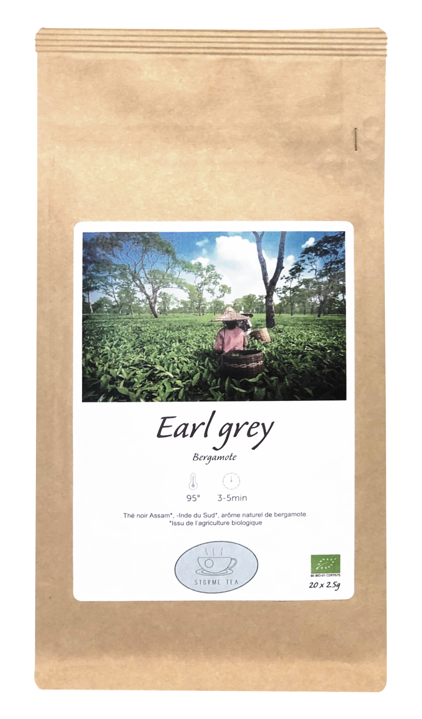 Thé noir Assam*, -Inde du Sud*, arôme naturel de bergamote. *Issu de l‘agriculture biologique